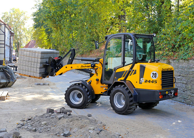 The Schäffer 2445 S stands as a compact articulated wheel loader, boasting a powerful 50 hp engine. This equipment impresses with its exceptional thrust, lifting capability, fuel efficiency, and a hydraulic flow system that can peak at 21.4 GPM when required.