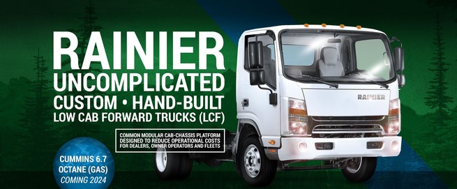 WHY RAINIER? We care about your business and the profitability of it, we listen carefully to understand your needs and try our best to deliver on them. We offer dealers and their customers a complete line of class 3-8 COE trucks. We offer 50 State Emmissions Compliant diesel, gasoline and power-trains. We offer a choice of vertical or horizontal exhaust configurations. We offer more standard features than anyone in this business.